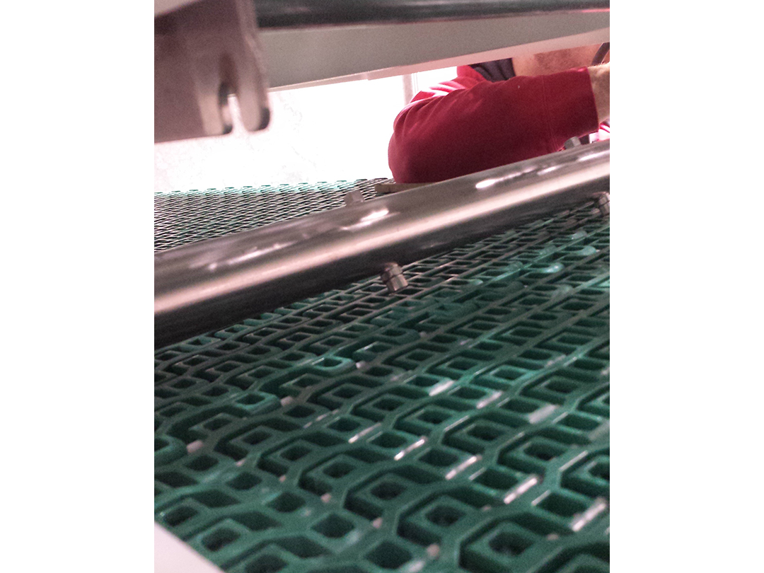 SPIRAL HYDRO CHILLER – All Stainless Steel Construction with Plastic Modular Blue AC Belt Depicting Belt Lift Sensor