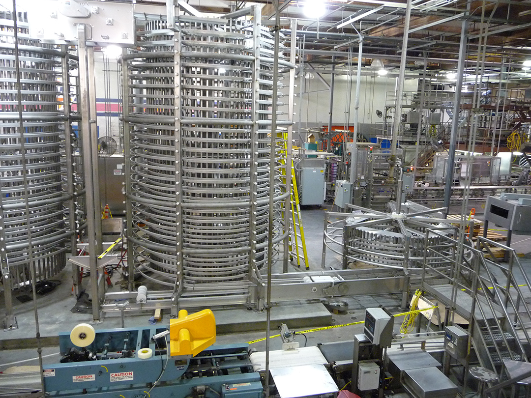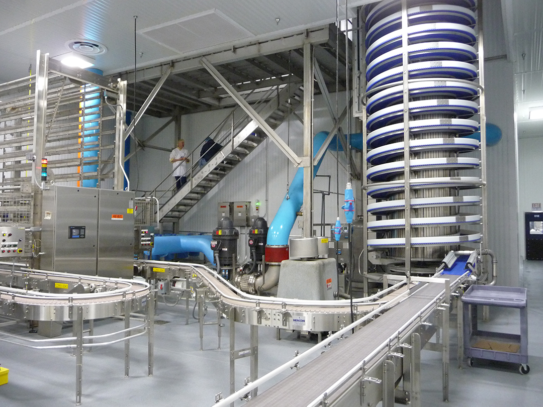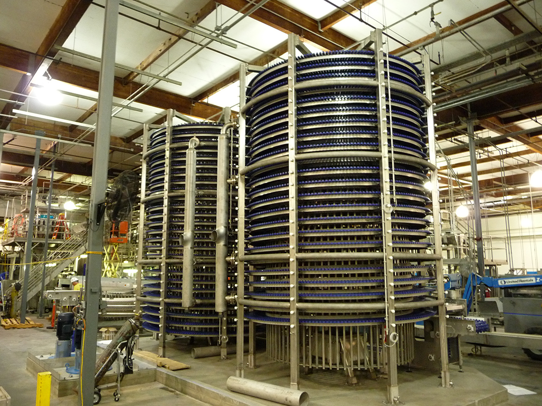 SPIRAL HYDRO CHILLER – 12000 Lb-Hr Capacity 5 Lb Bags & 24 Oz Trays – 50 Inch Belt Width X 30 Tiers