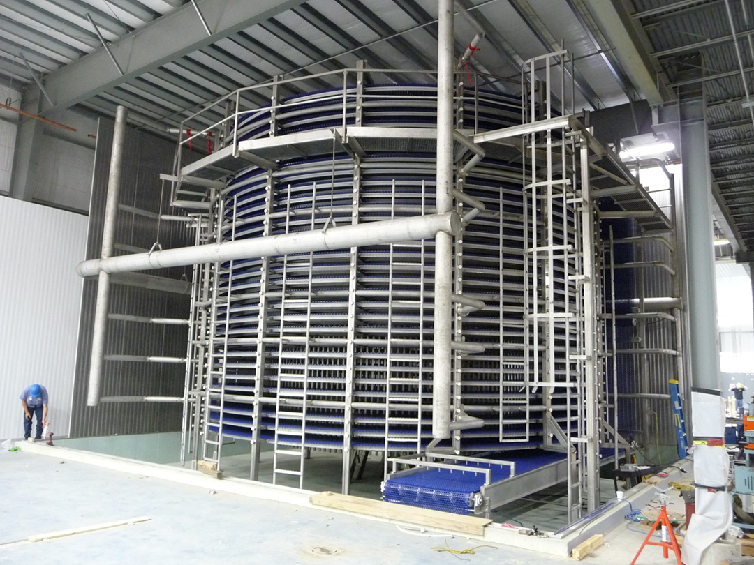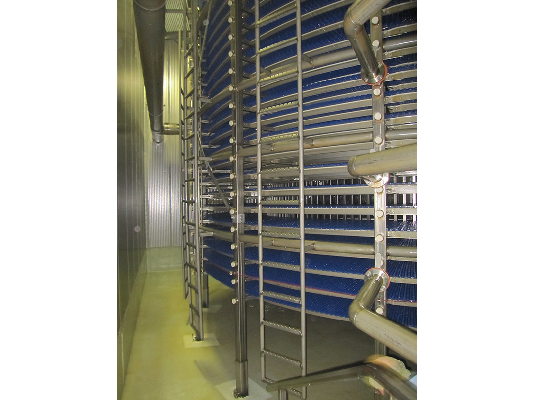 SPIRAL HYDRO CHILLER – Encloser and Controls for Combination Ascending Descending Combination Spiral System which Provides a Linear Layout for a Mature Factory