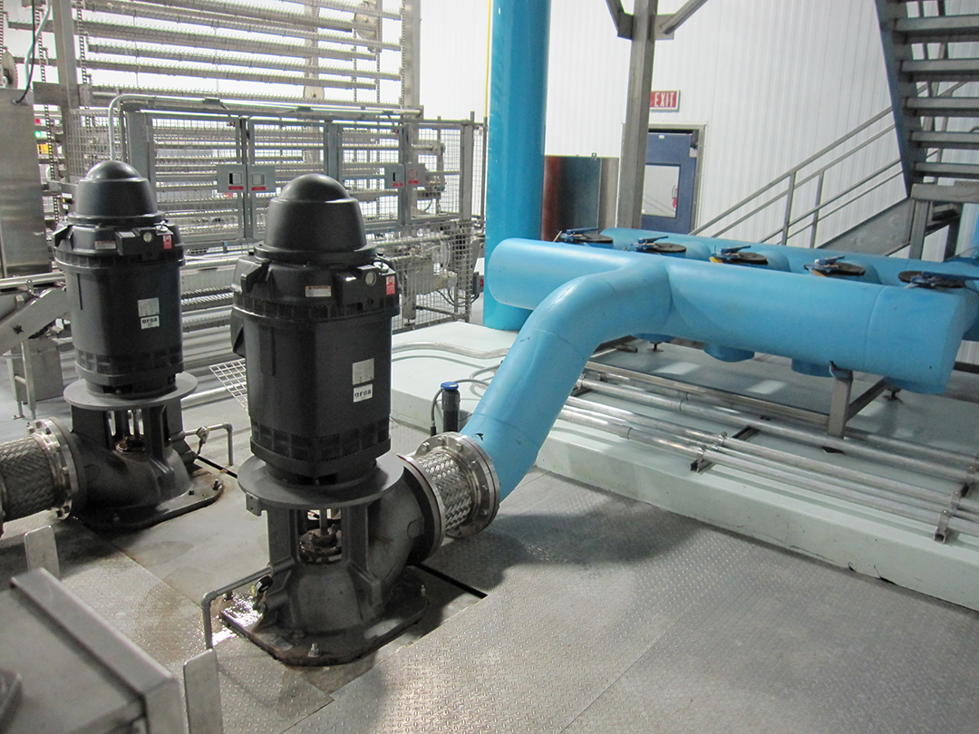 Chiller Turbine Style Pumps Draw Water from Sump at High Volumes – Strainers Plumbed in Parallel to Remove Suspended Particles
